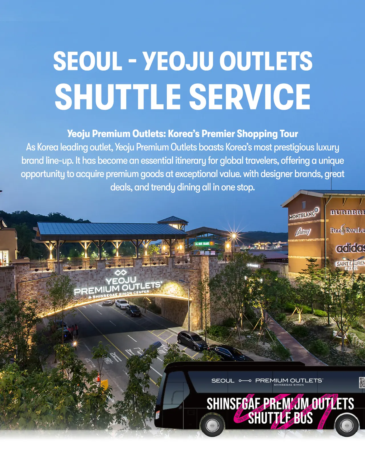 Shop luxury brands like PRADA and GUCCI at YEOJU PREMIUM OUTLETS.